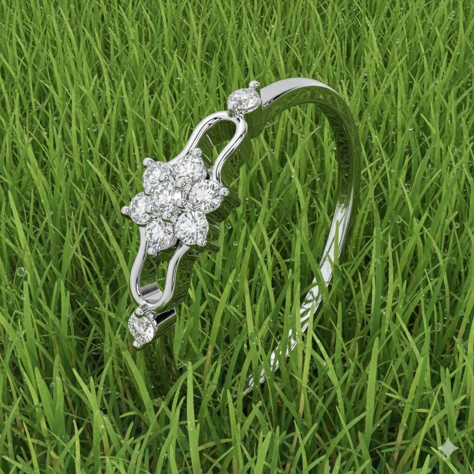Elegant Women's Sterling Silver 925 Promise Ring Zircon Diamond for Wedding Anniversary Daily Wear Floral Cluster Jewelry