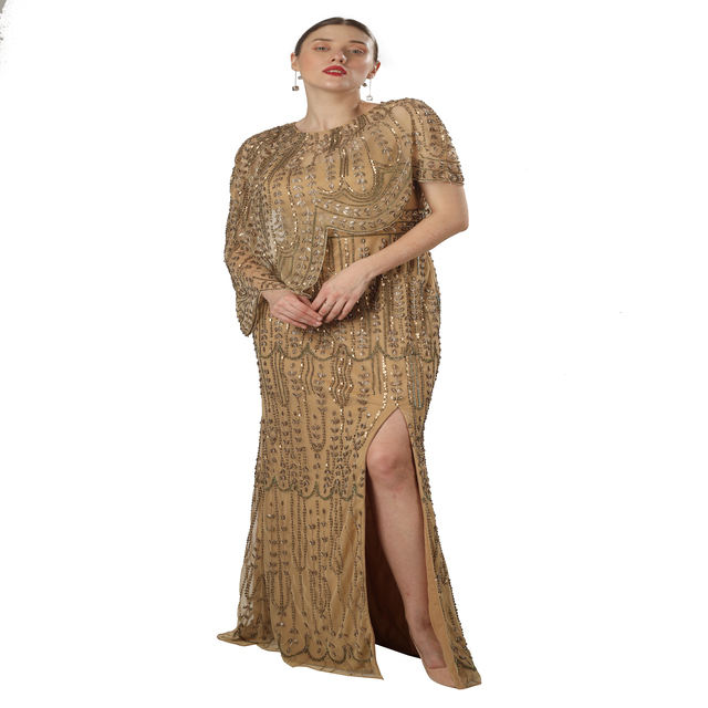Elegant Womens Evening Gown with Design Gold Long Dress Formal Party Dress for Weddings Galas and Special Occasions from India