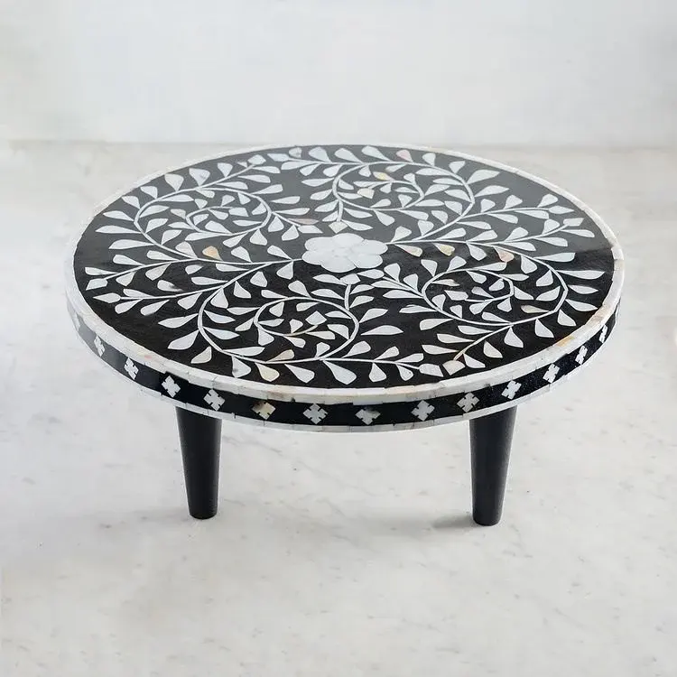 Elegant Wood Cake Stand with Mother of Pearl and Bone Inlay for Catering Bulk Order Cake Tools