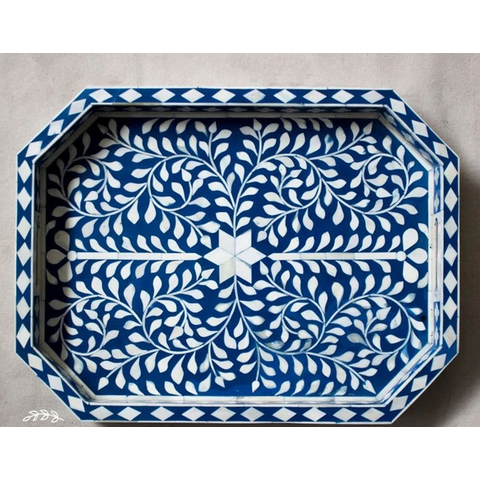 Elegant Wood Tray with Floral and Traditional Bone Inlay Design for Serving Tea Coffee Snacks