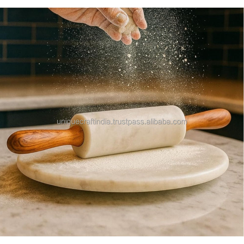 Elegant Wood and Marble Chakla Belan Set | Handcrafted Rolling Board and Pin | Hybrid Design for Roti Chapati Lovers