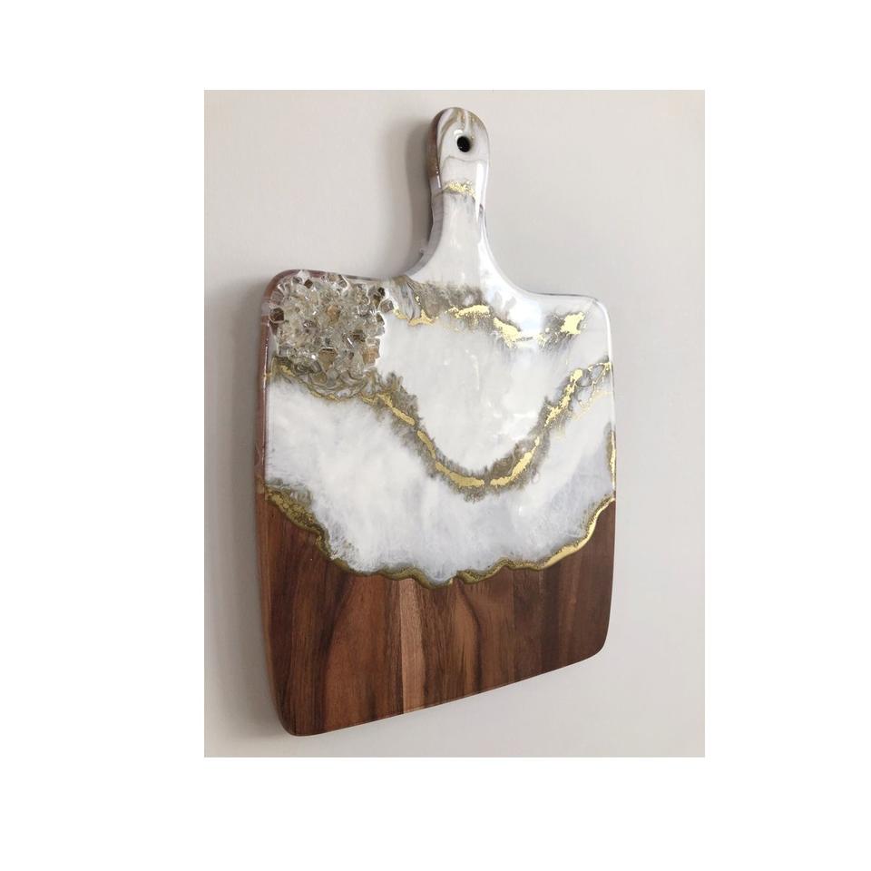 Elegant Wooden And Resin Chopping Board With Epoxy Resin Pattern Perfect For Kitchen Gift And Dining Table Display