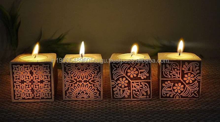 Elegant Wooden Block Tea-light Holder Christmas Candle Holder Diwali Decor Return Gift Wedding Favour Gifts