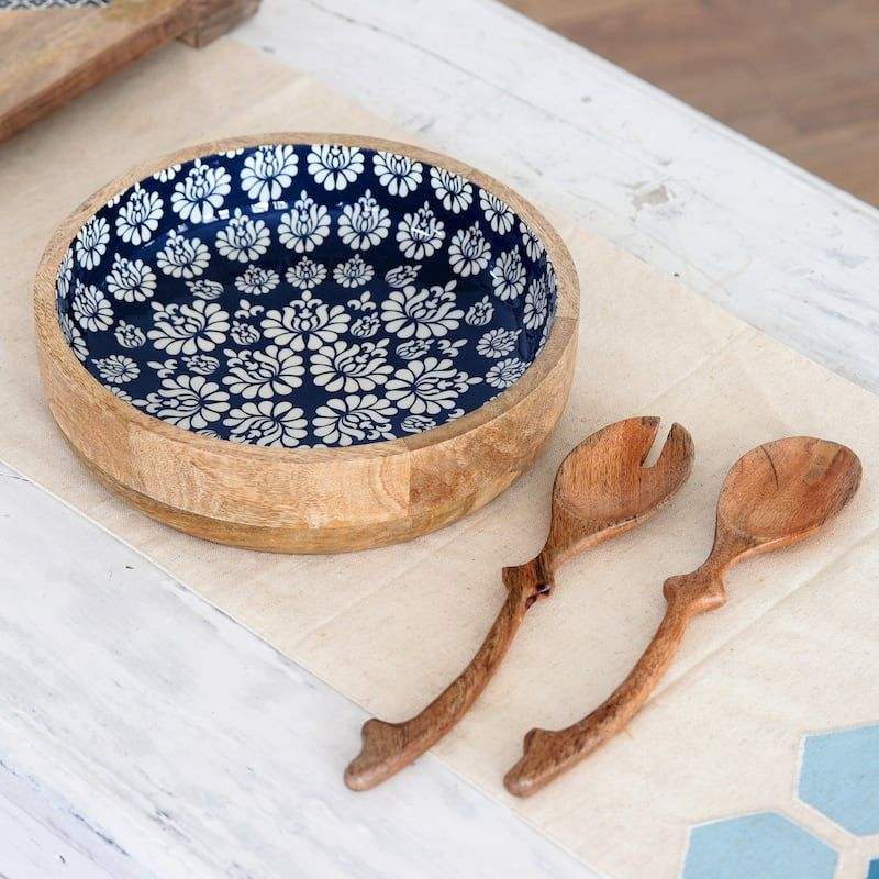 Elegant Wooden Bowl With Enamel Design Handcrafted Multipurpose Serving Dish For Fruits Snacks Bread Home Styling