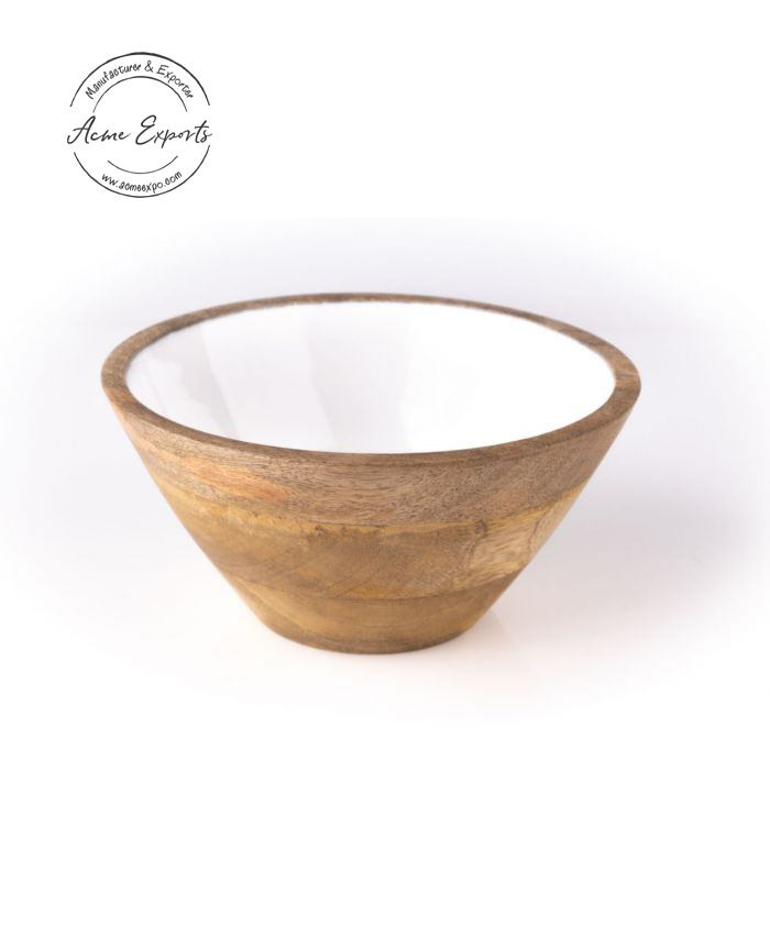 Elegant Wooden Bowl with White Enamel Interior Ideal for Serving Snacks Stylish Durable Modern Dining Table Decor Gift