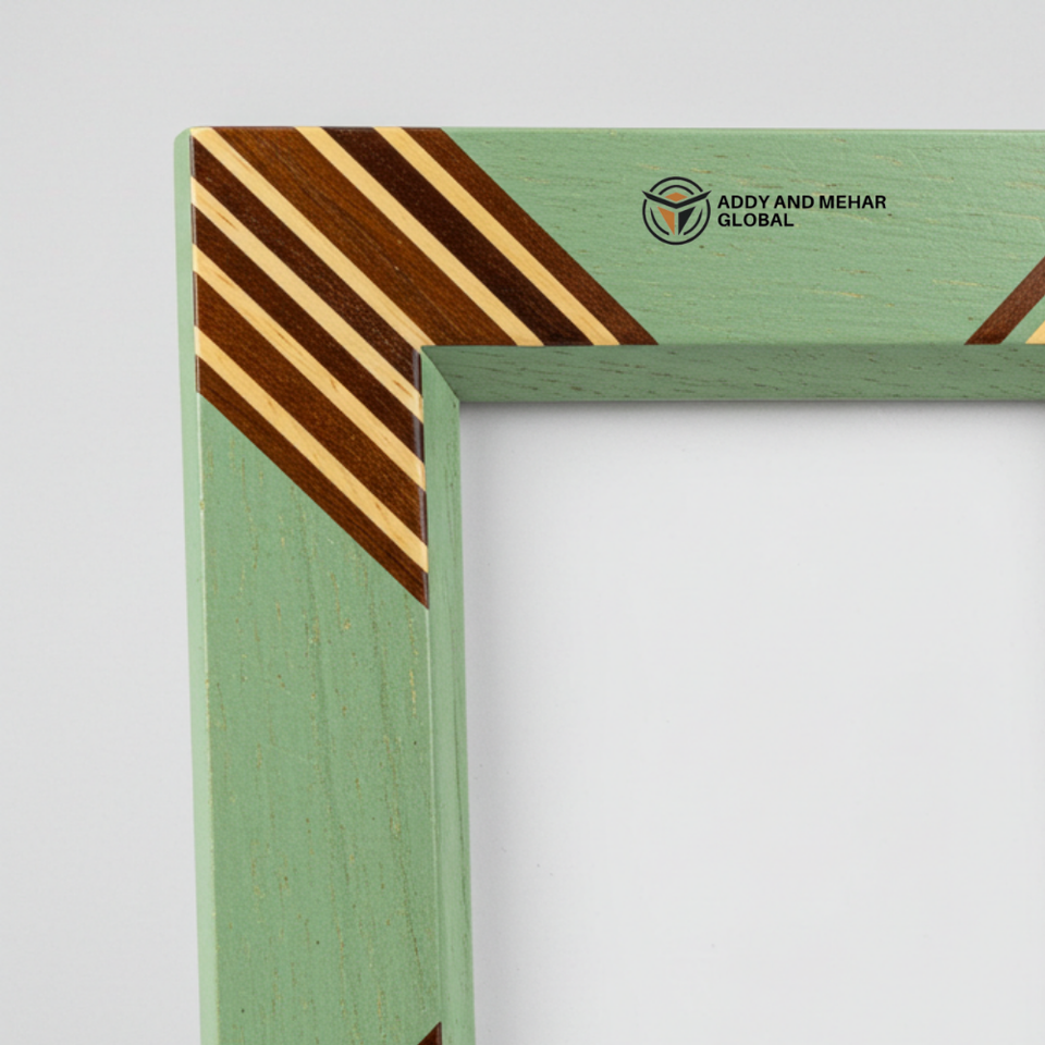 Elegant Wooden Picture Frame Handmade Mint Green Striped Decor Accent