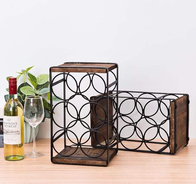 Elegant Wooden and Metal Wine Rack Handmade Decorative Holder for Champagne Bottles Home and Bar Decor