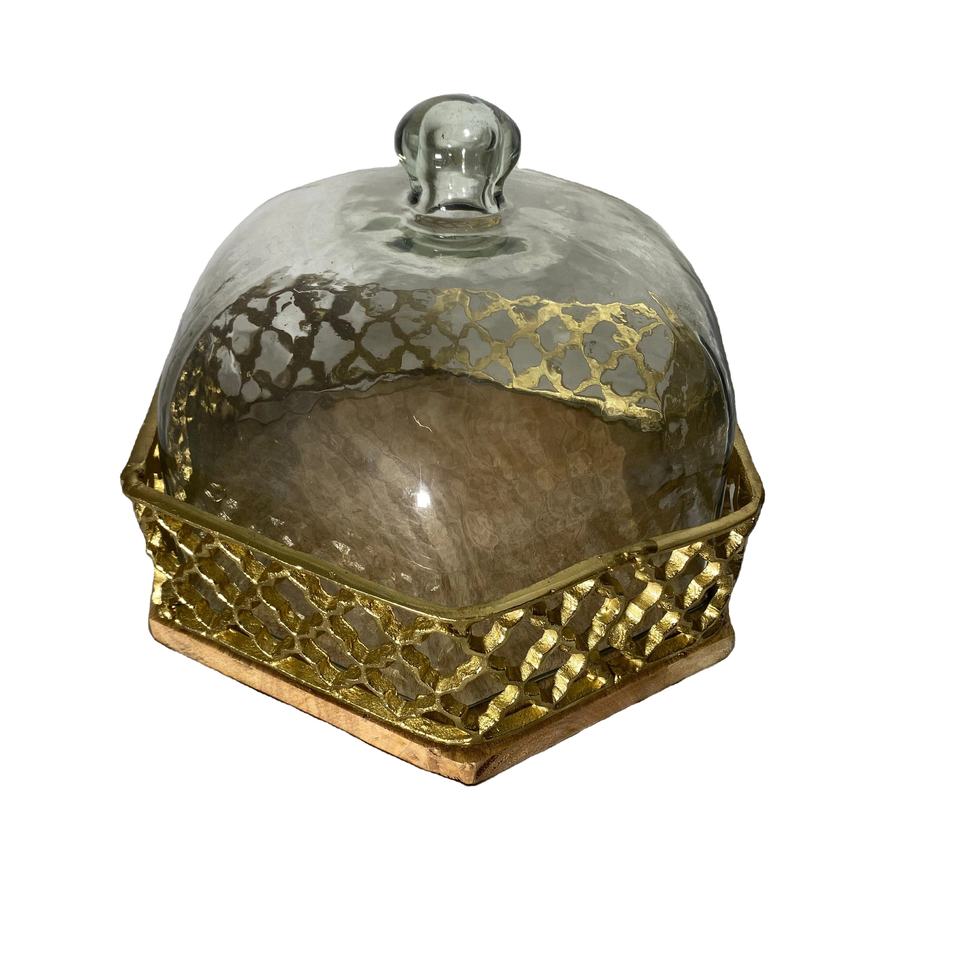 Elegant and Durable Hexagon Base Cake Dome Aluminium and Glass Display Cover for Weddings Parties Home Decor Cake Tools Tray
