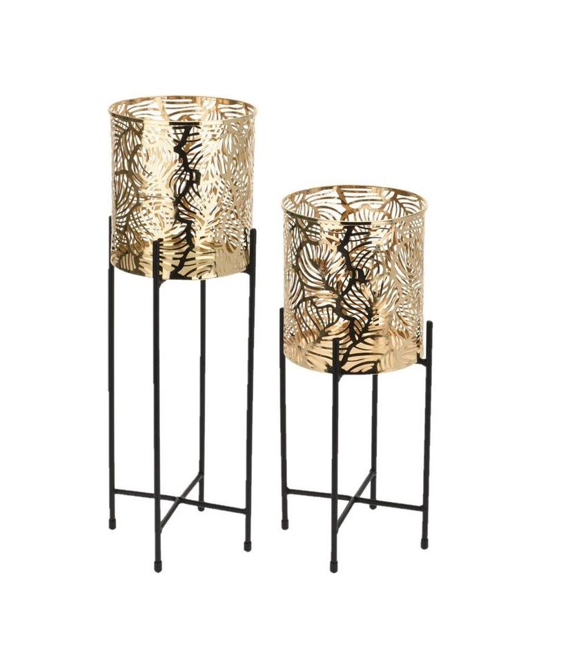 Elegant and tall premium design metal planter with robust metal stand for indoor artificial plants or floral stems setup