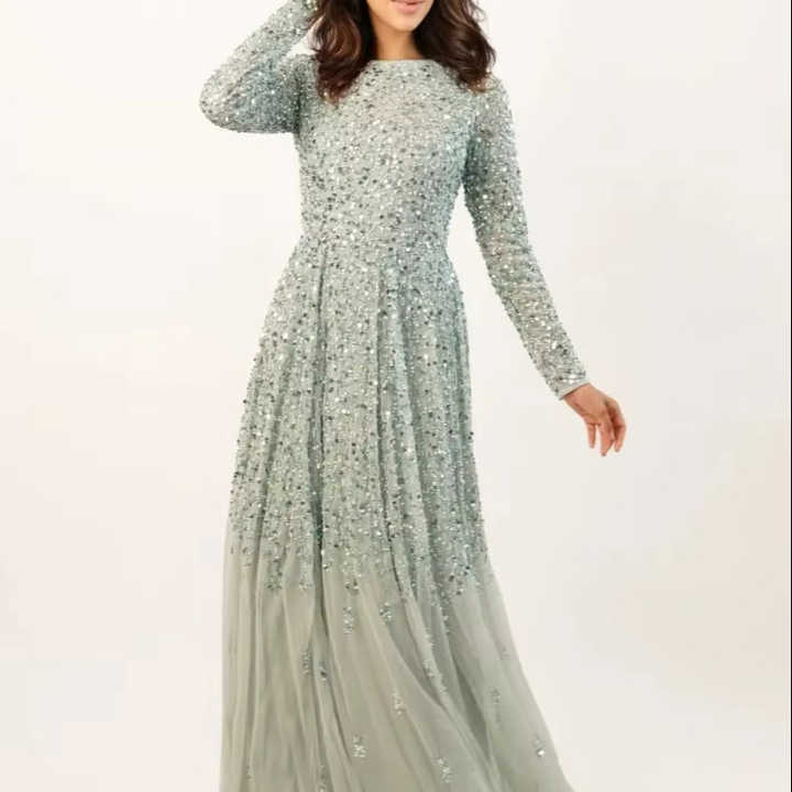 Elegant Beaded Sequin and Beads Shoulder Aline Body Shape One Sleeve Evening Dress Ball Gown Party Dress Long Gown