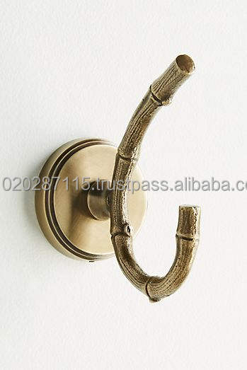 Elegant brass wall hooks with intricate detailing for organizing bathroom towels or entryway jackets in classic vintage decor
