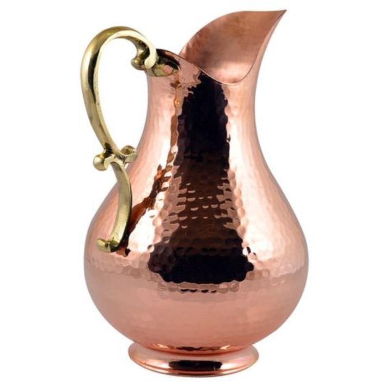 Elegant copper jug with shine polish handcrafted design adds style to home kitchen and dining table decoration