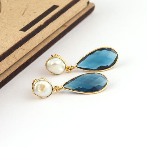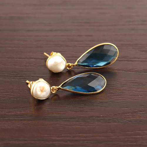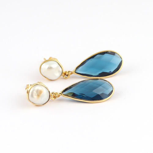 Elegant dainty natural fresh water pearl & briolette cut iolite quartz drop dangle earring gold/silver plated top sales earring