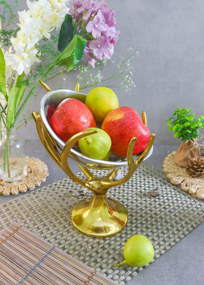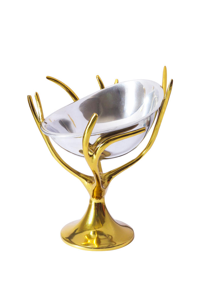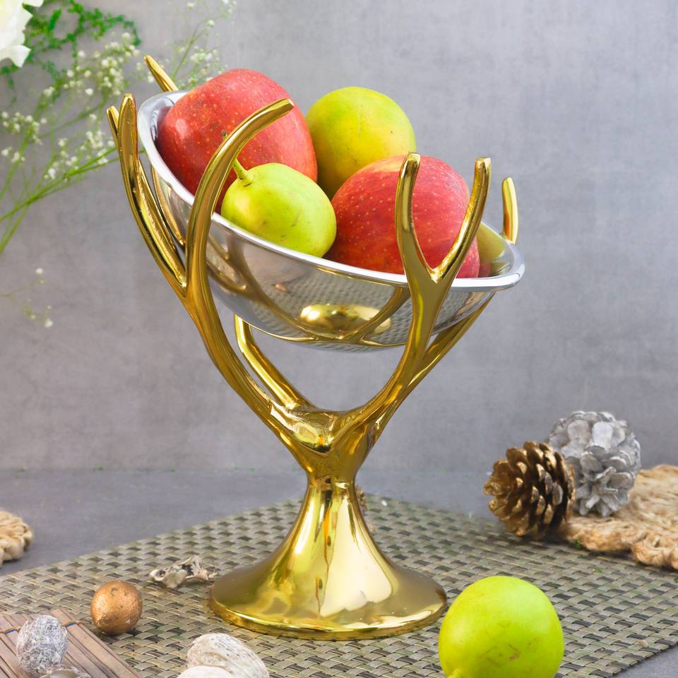 Handmade Elegant Gold Brass Branches Aluminum Leaf Stand Perfect Metal Fruit Bowl Serving Dish Table Centerpiece for Parties