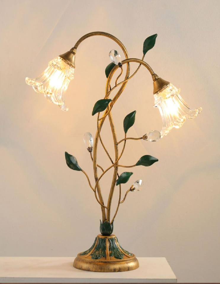 Elegant double floral lamp with leaf and crystal accents. Available at wholesale prices