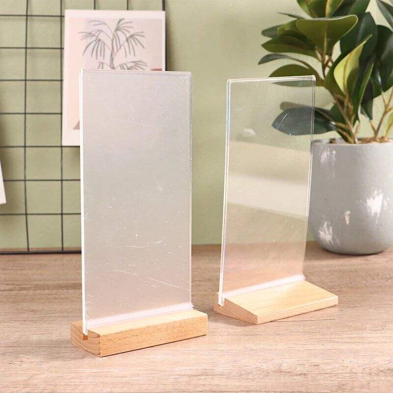 Elegant for Acrylic Sign Holder with Wooden Base A4 Size for Shop Display Stand Counter Top Stores Weddings Advertising