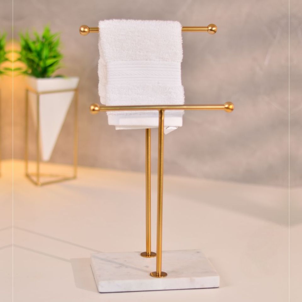 Elegant freestanding marble and metal towel stand bathroom rack with stylish finish ideal for modern family homes