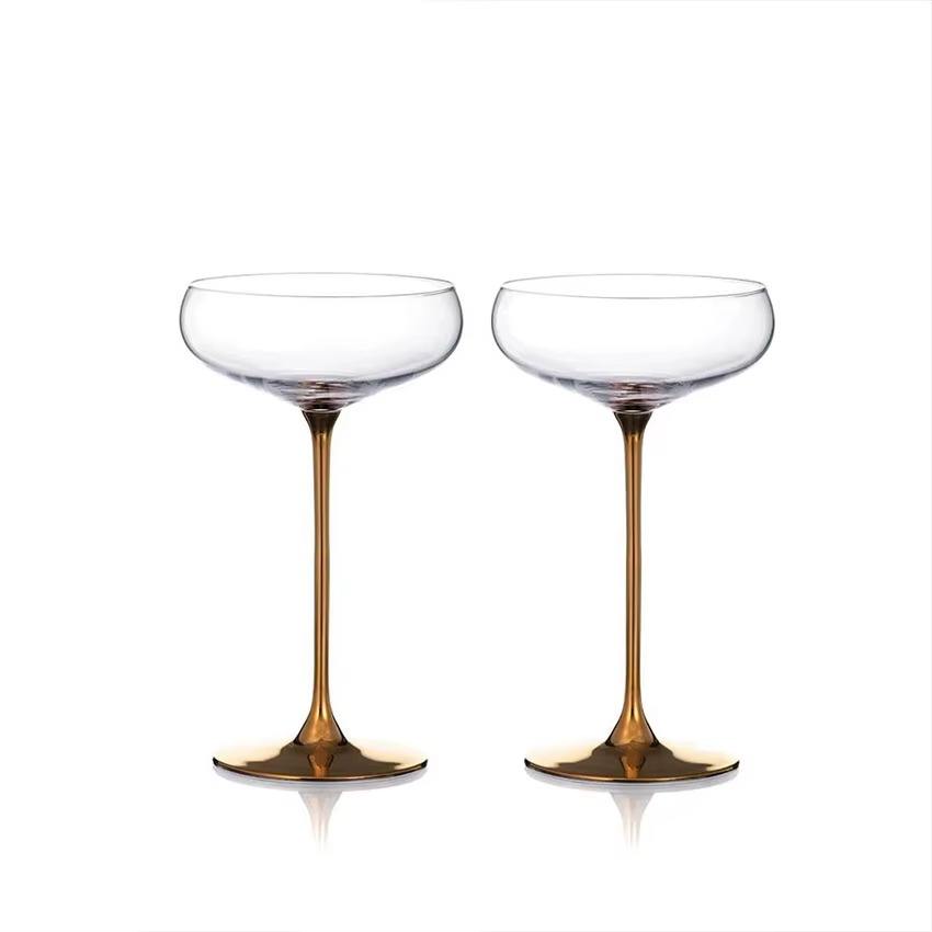 Elegant glass & metal wine glasses enhance table settings and create a sense of luxury during meals and celebrations