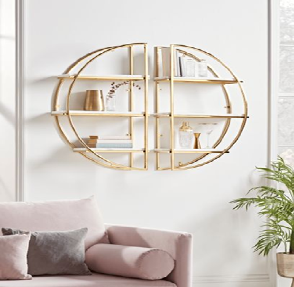 Elegant gold round split wall shelves, ideal for luxurious and modern decor. Available at wholesale prices.