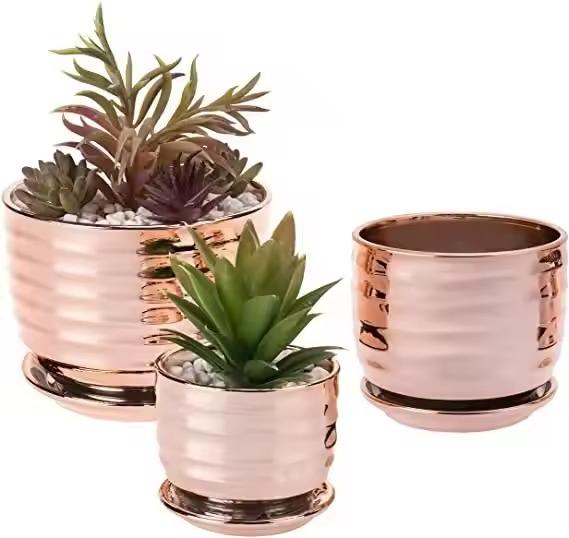 Elegant hammered copper planter set perfect for indoor plants stylish home accent for living rooms shelves and windows