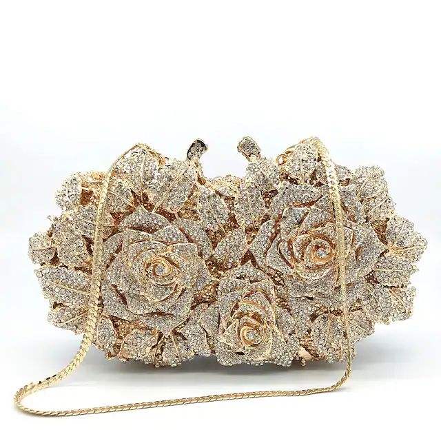 Elegant ivory minaudière with delicate gold floral embroidery. Available at wholesale prices. Timeless bridal style.