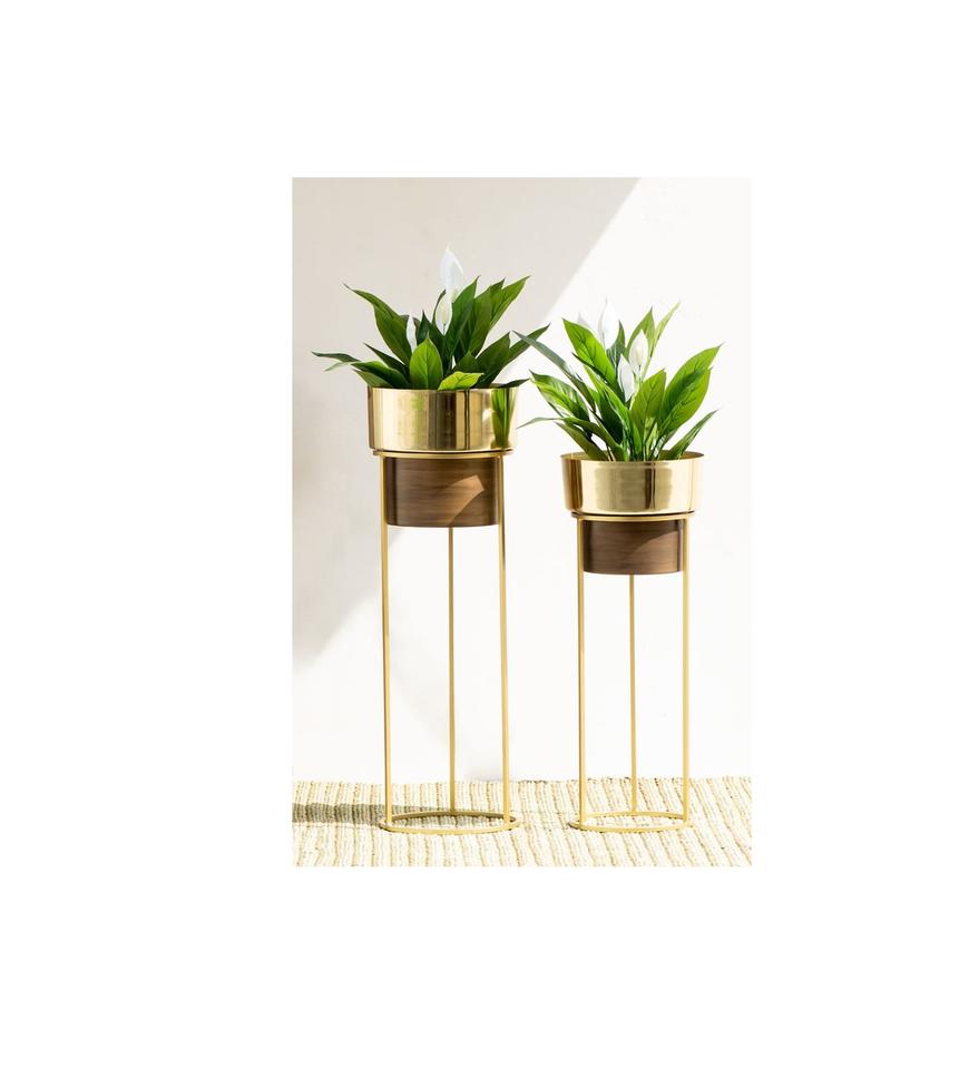 Elegant metal flower pot delivering golden polished luxury ideal for uplifting indoor plants used for decor