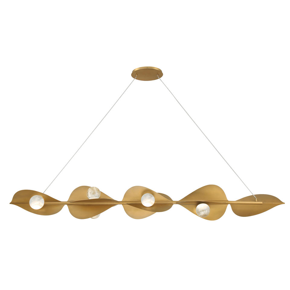 Elegant modern 8 Light Island Linear pendant light in Soft Brass with Glass Chandelier Living room Villa design