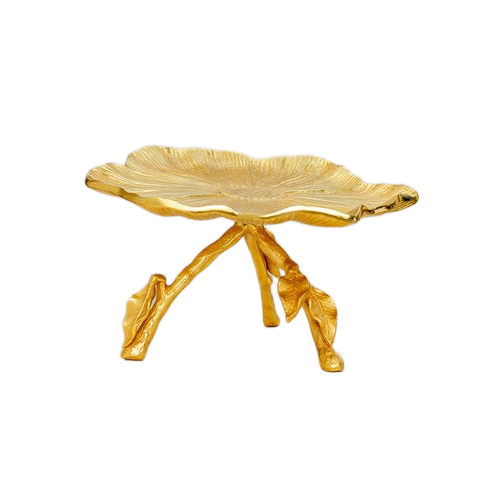 Elegant mold made golden leaf shaped metal pedestal epoxy tray with legs & finished look like Resin detailing for decor display