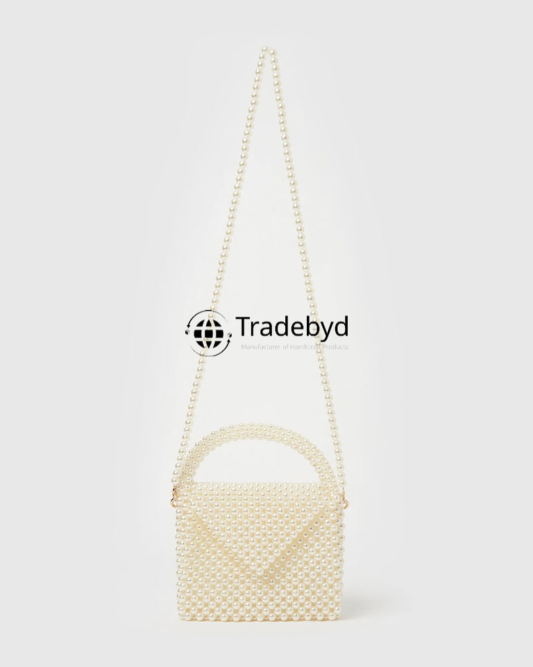 Elegant pearl clutch bag for women handmade purse for bridal gifting wedding functions and party looks by Tradebyd