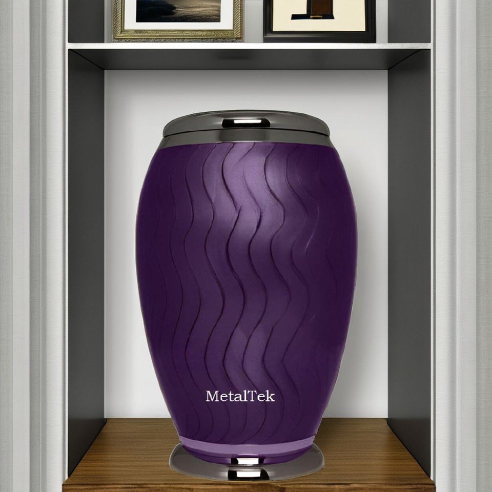 Elegant purple cremation urn for adult keepsake ashes handcrafted in aluminium secure thread lock lid for cherished memories jar