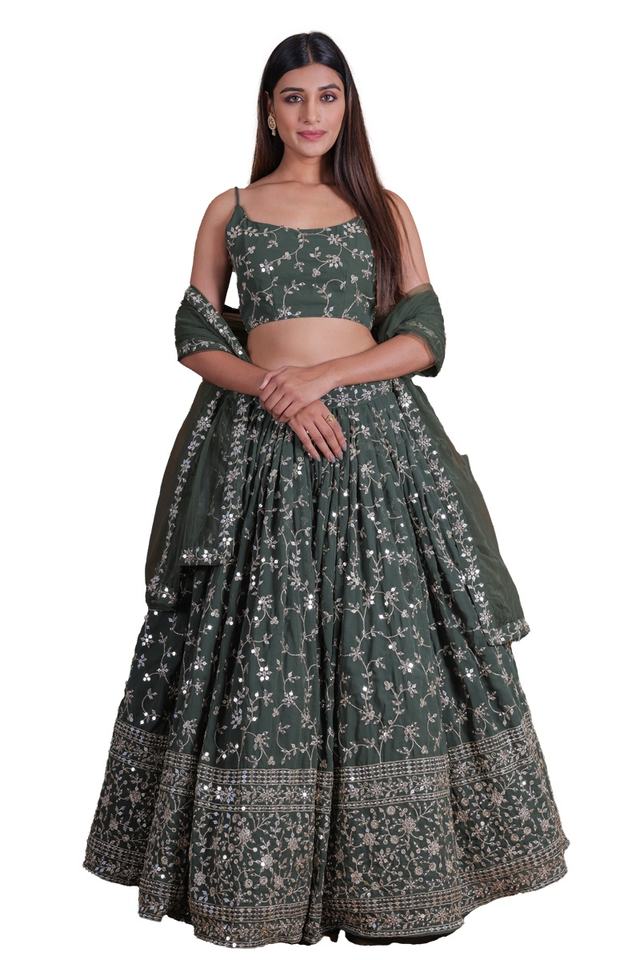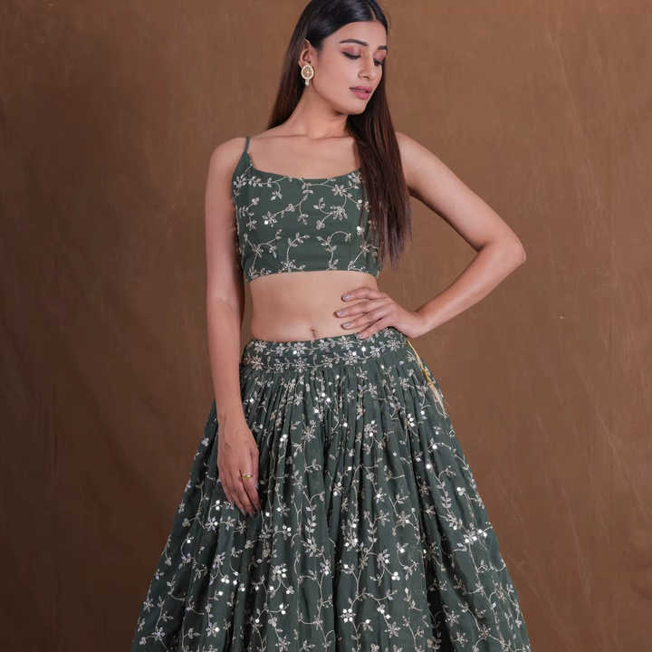 LEHENGA WORK:Zari, Sequence Embroidery Work
