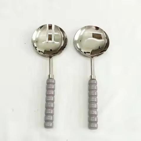 Elegant serving Spoon & Fork set High Quality Wedding Tableware Silver Mirror Polished Brass Leaves End Handle Salad Server