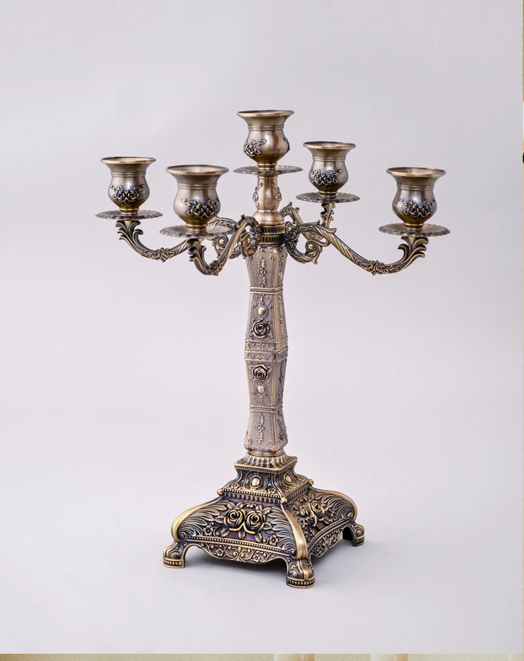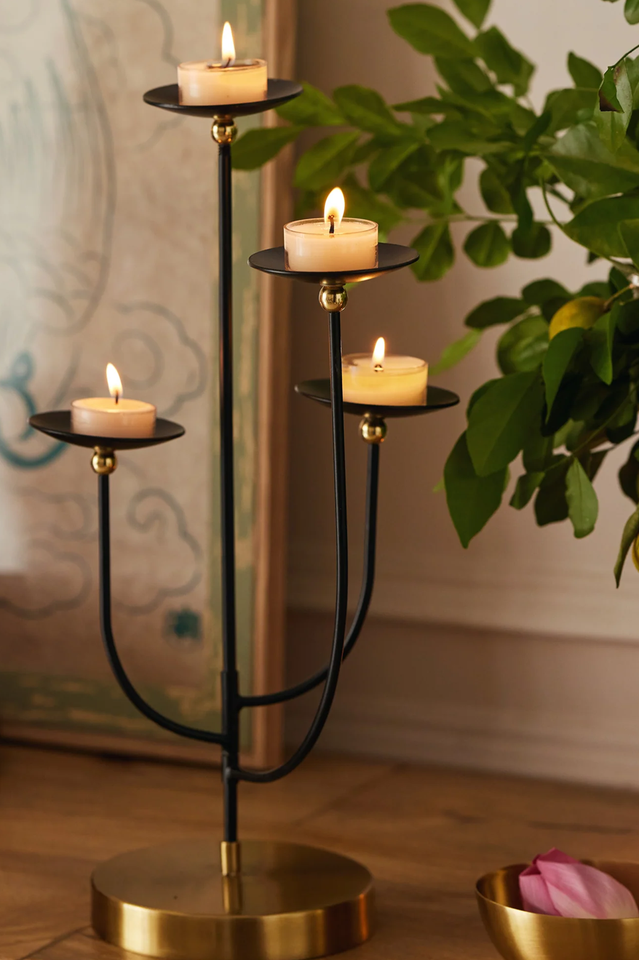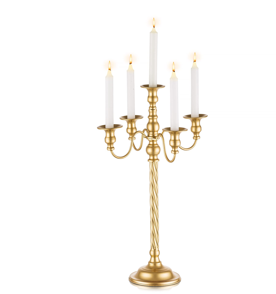Elegant, simple gold wire, 4-light, minimalist holiday taper table candelabra, available at wholesale prices.