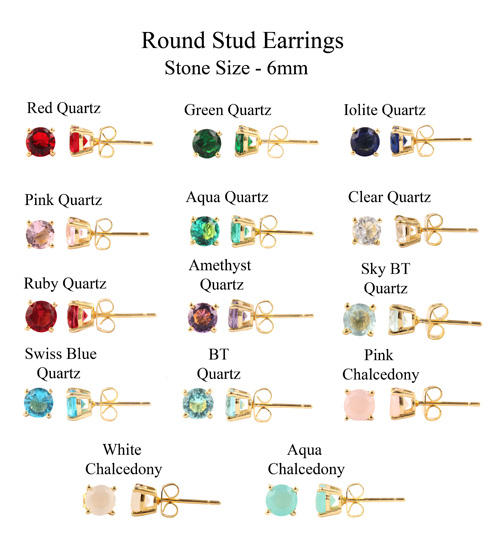 Elegant solitaire stud earring prong setting aqua chalcedony ear post stud brass gold plated minimalist round shape earring stud