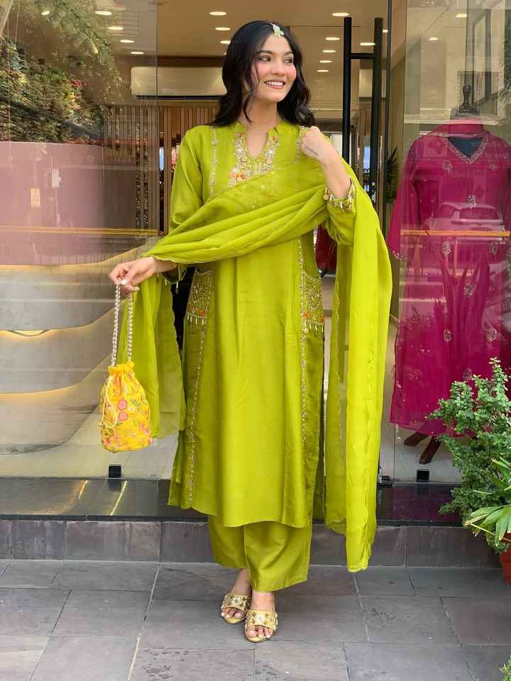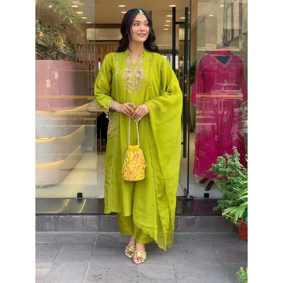 Elegant summer cotton kurta set with heavy embroidery A line on kurta and beautiful organza cutwork embroidery wholesale India
