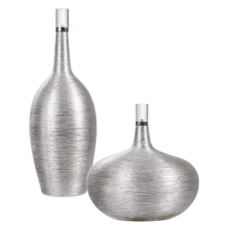 Elegant tall metal vase with antique brass finish for luxury boutique hotel lobby and reception floral arrangement
