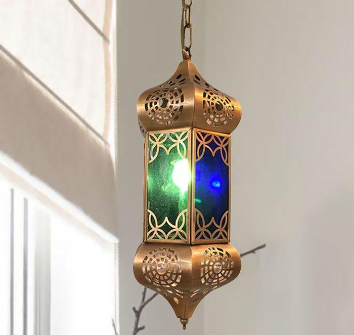 Elegant vintage Moroccan hanging lantern crafted from high quality metal iron with intricate symmetrical filigree designs