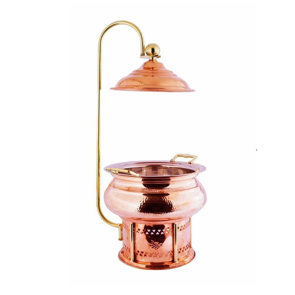 Elegant vintage look copper chafing dish with intricate detailing perfect for wedding buffet catering and festive occasions