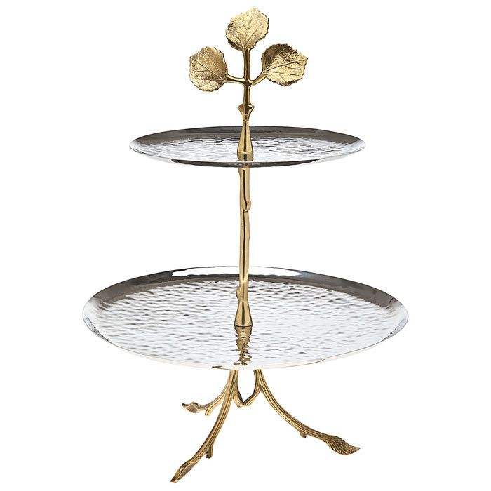 Elegant vintage look handcrafted metal cake stand with antique detailing for wedding dessert table centerpieces