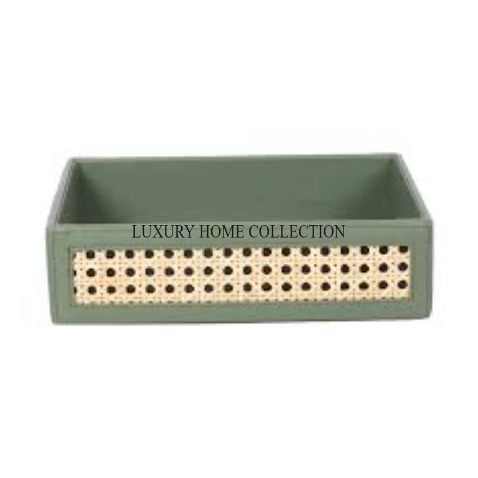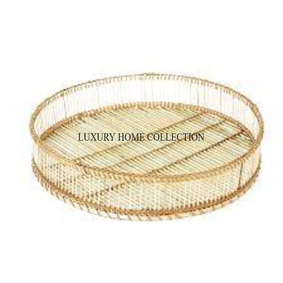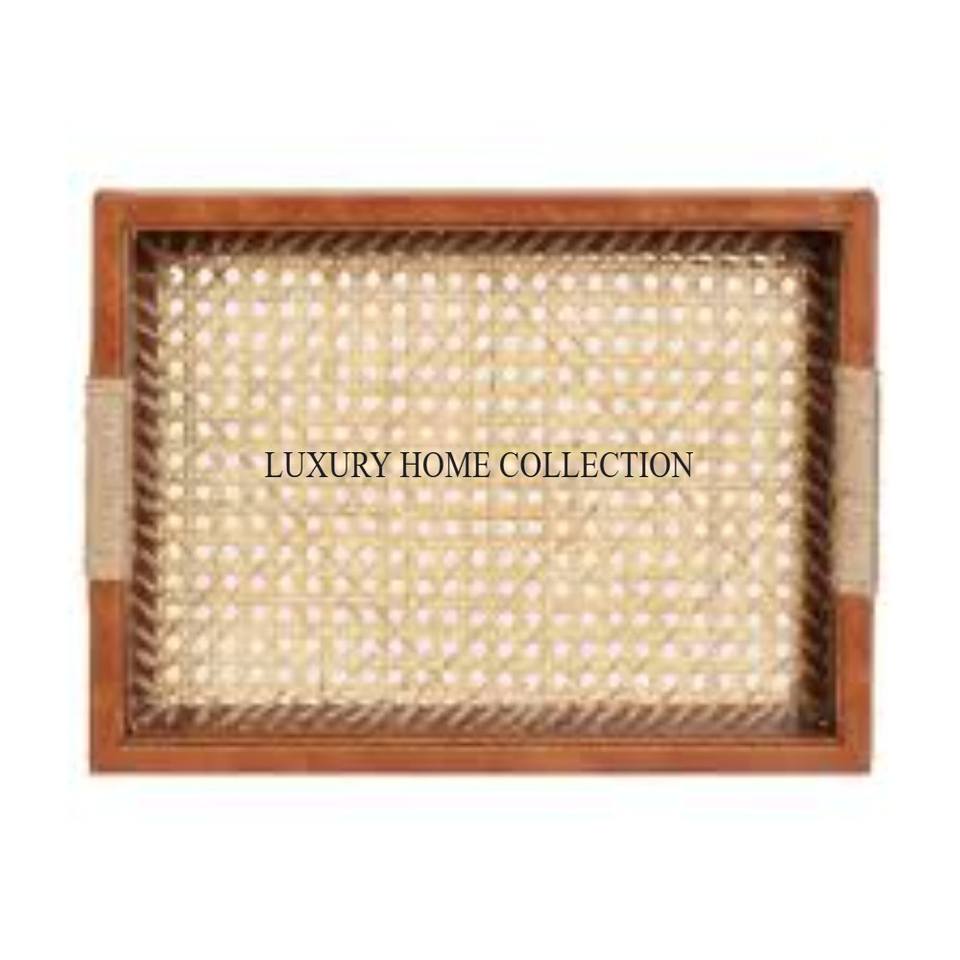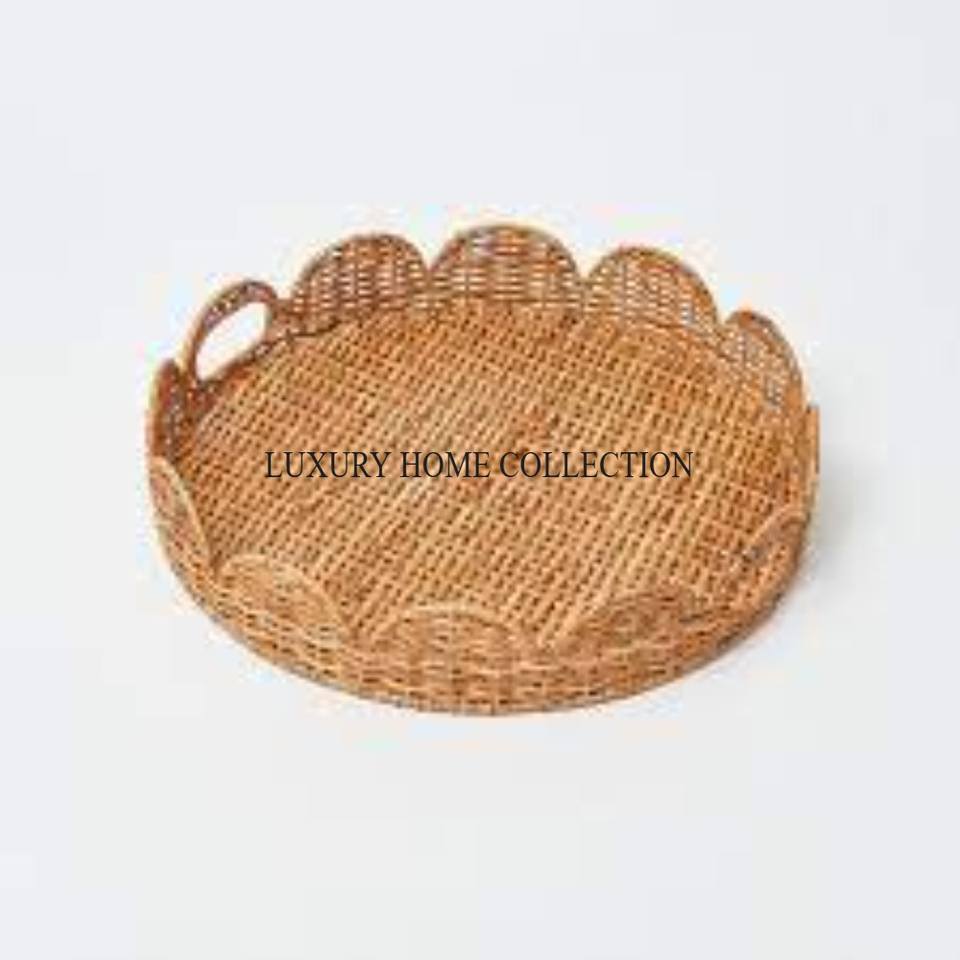 Elegant vintage-style rattan material serving tray with handwoven details for an aesthetically pleasing kitchen setup