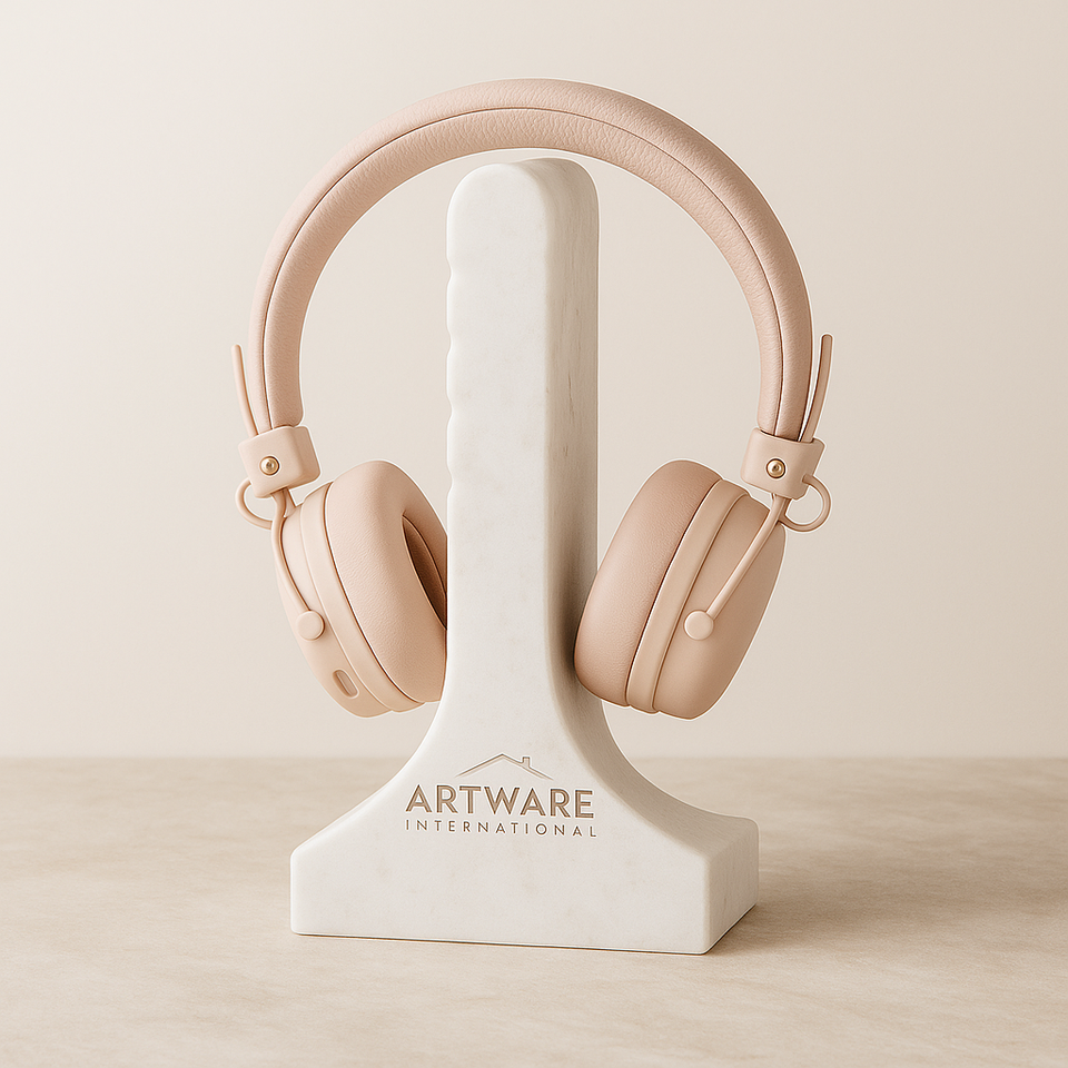 Elegant white marble headphone stand solid stone premium headset holder modern minimalist earphone organizer luxury desk trendy