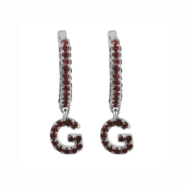 Elegant women's trendy hoop earrings rhodium 925 silver sterling garnet natural gemstone letter G earring anniversary party gift