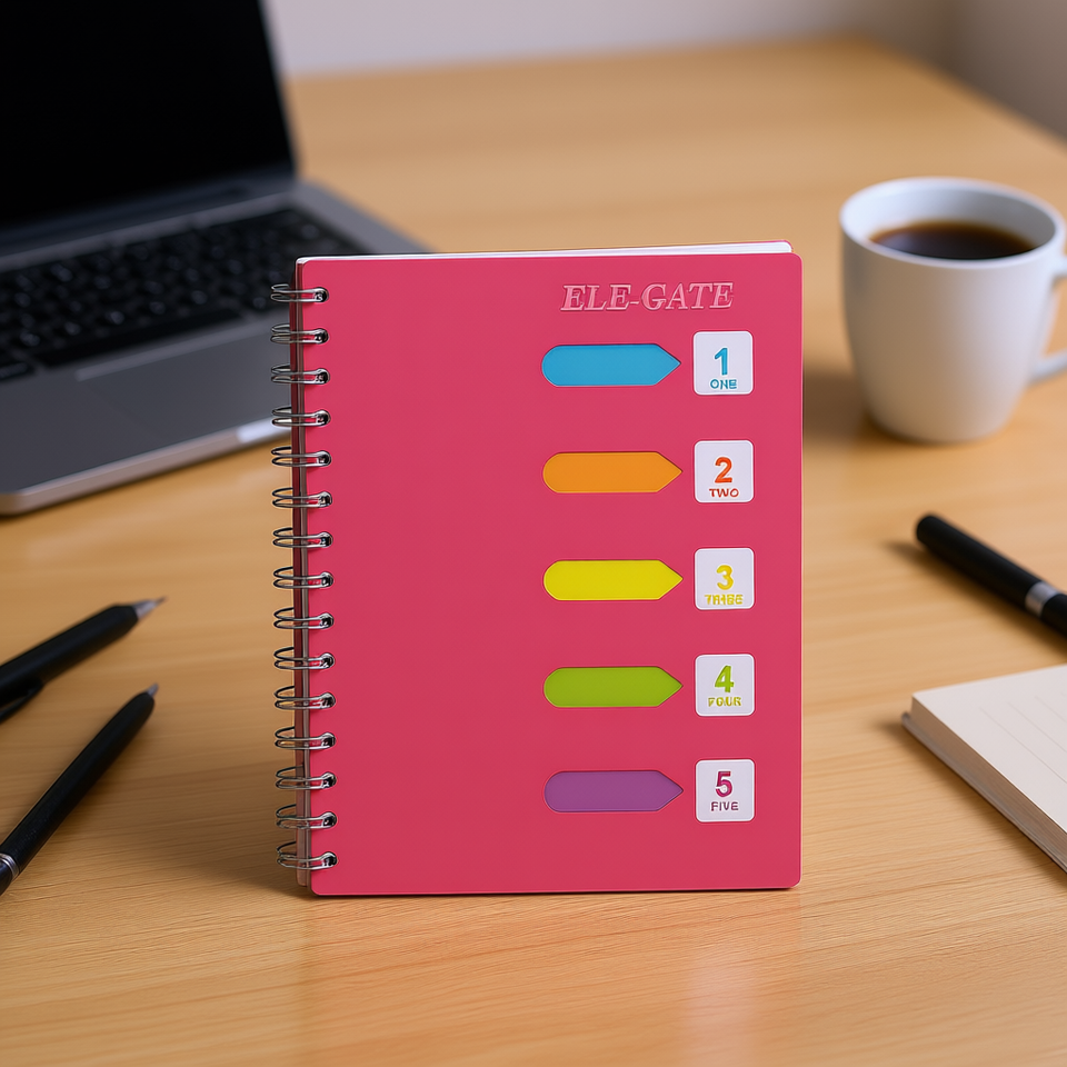 Elegate Spiral Bound A4 Notepad 80 Sheets Colorful Dividers Durable Organized Journal For School Office Use