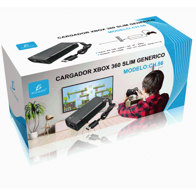 Elegate Xbox 360 Slim Power Supply Adapter 60W DC Output 12V/5A with Overcurrent Protection for Game Player, ABS Material, Input
