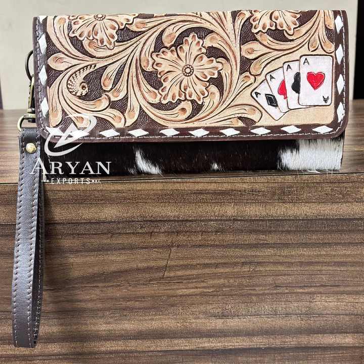 Product name:Hand Tooled Cowhide Leather Wristlet Wallet