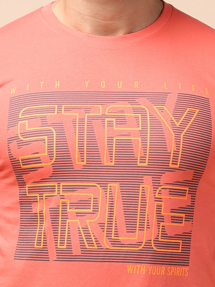 Elegant Light Red T-Shirt with Printed Full Sleeve and round Neck Comfortable 100% Cotton Casual Wear Fashionable Versatile