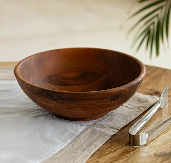 Elemental Serving Salad Bowl With Salad Servers Mango Wood Round Serving Bowl for Pasta Fruits Salads or Popcorn