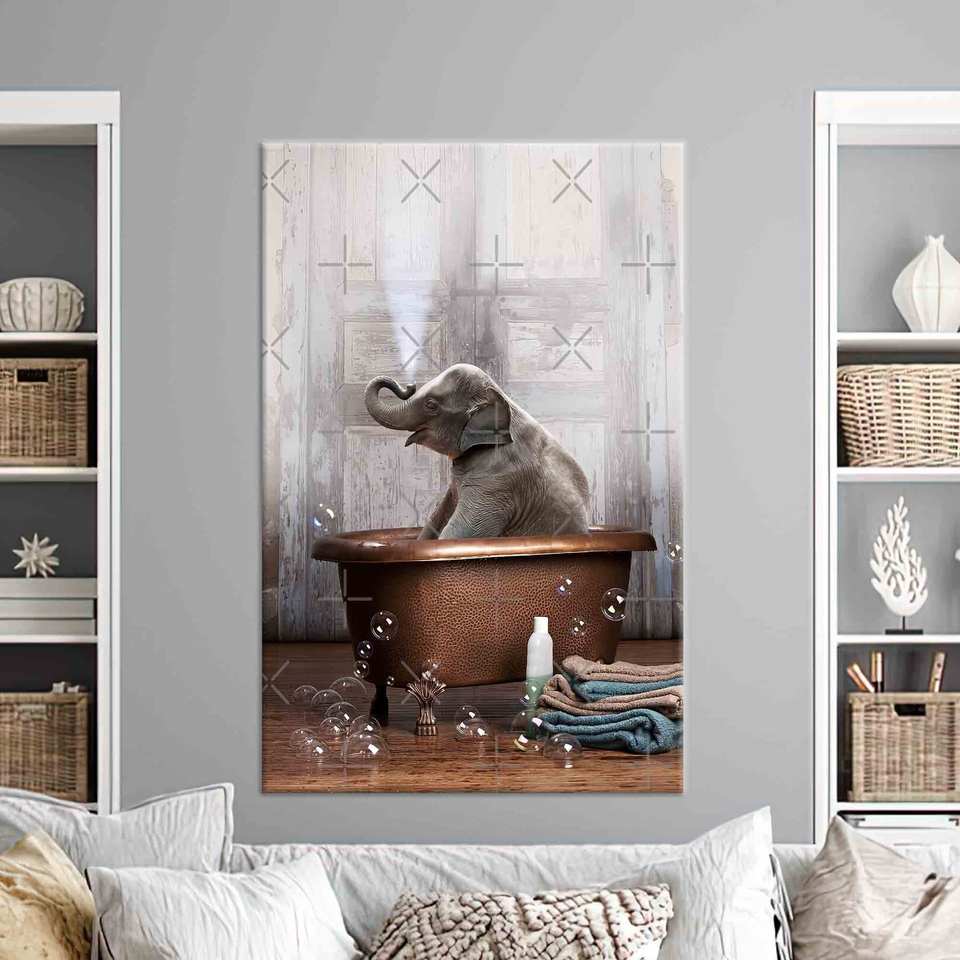 Elephant Bathtub Canvas Print: Artistic Bathroom Wall Decor,WRAPPED CANVAS