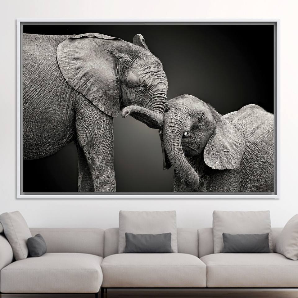 Elephant Mom and Baby Printed Canvas: Elegant Nursery Decor,WHITE FRAMED CANVAS