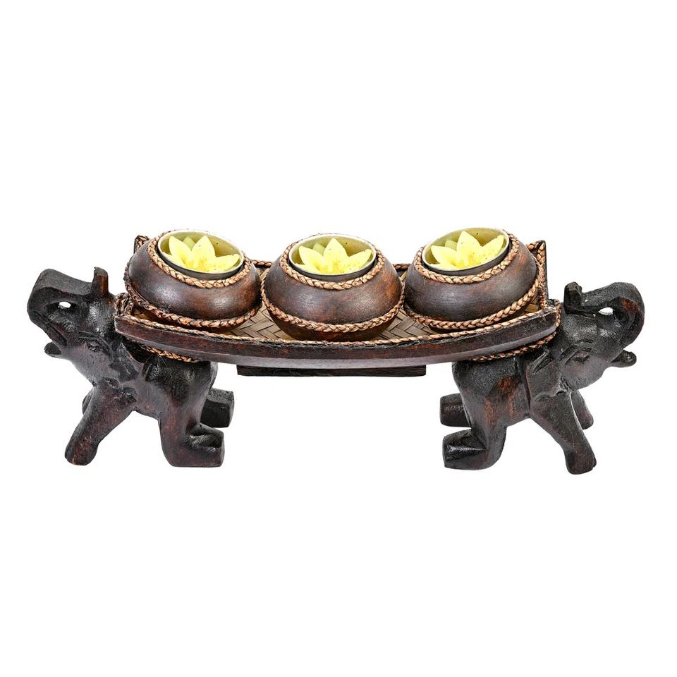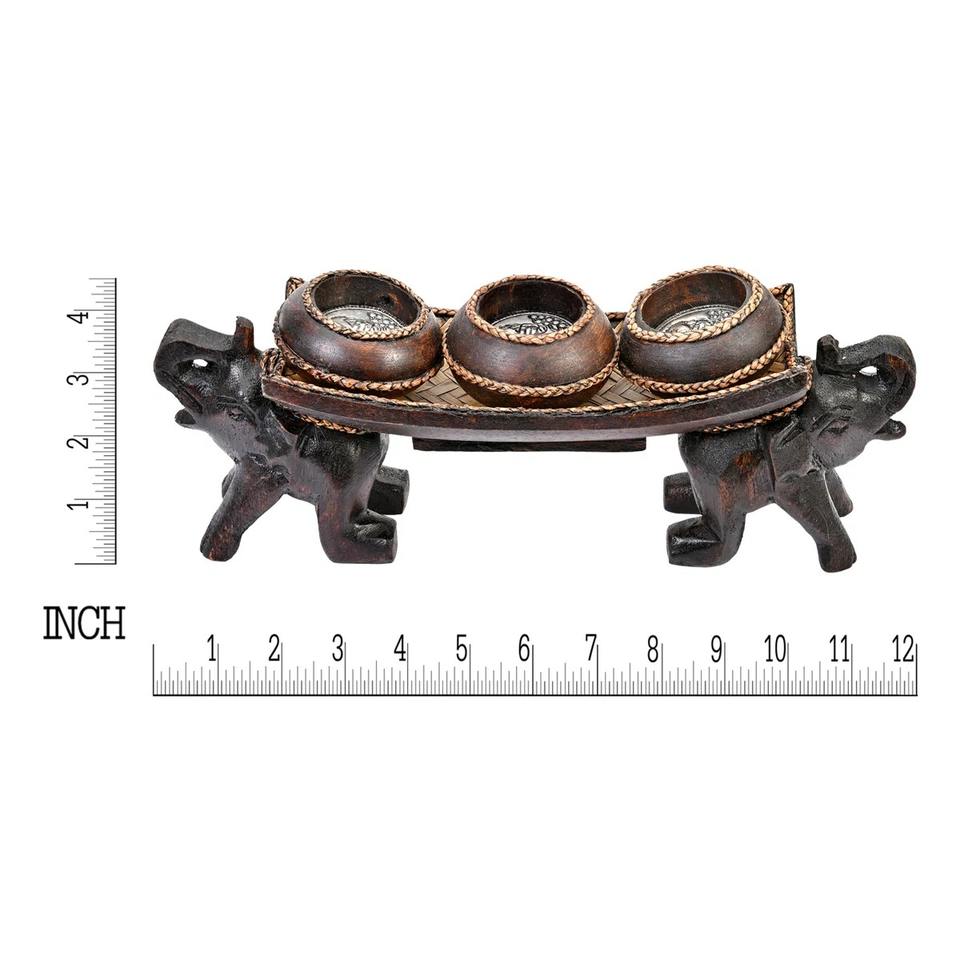 Elephant and pot design wooden candle holder charming decorative piece for home decor gifting and festive ambience From India